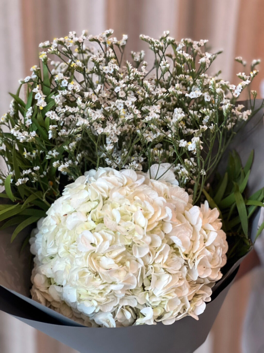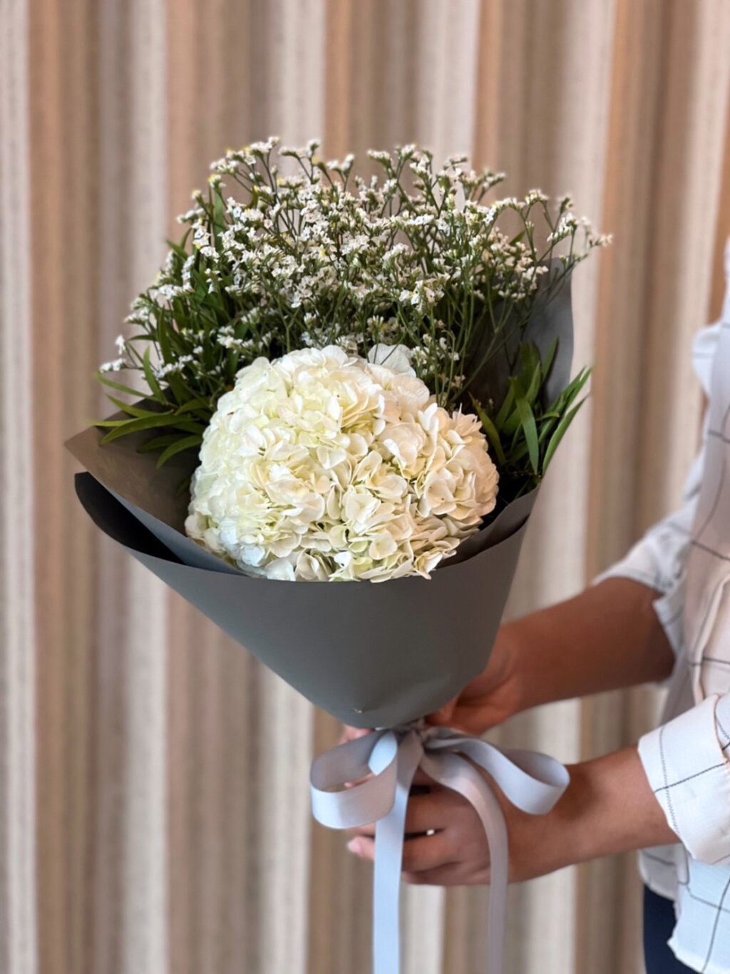 ดอกไฮเดรนเยียมีความหมายถึงความบริสุทธิ์ เหมือนกับความรู้สึกแสนบริสุทธิ์ที่อยากจะมอบให้อีกฝ่าย ไม่ว่าจะเป็นคนรักหรือคนที่แอบรัก สำหรับความรู้สึกที่มันล้นอกอยู่ในใจแต่ไม่กล้าบอกไป ให้ดอกไม้ช่อนี้ช่วยบอกแทนคุณ